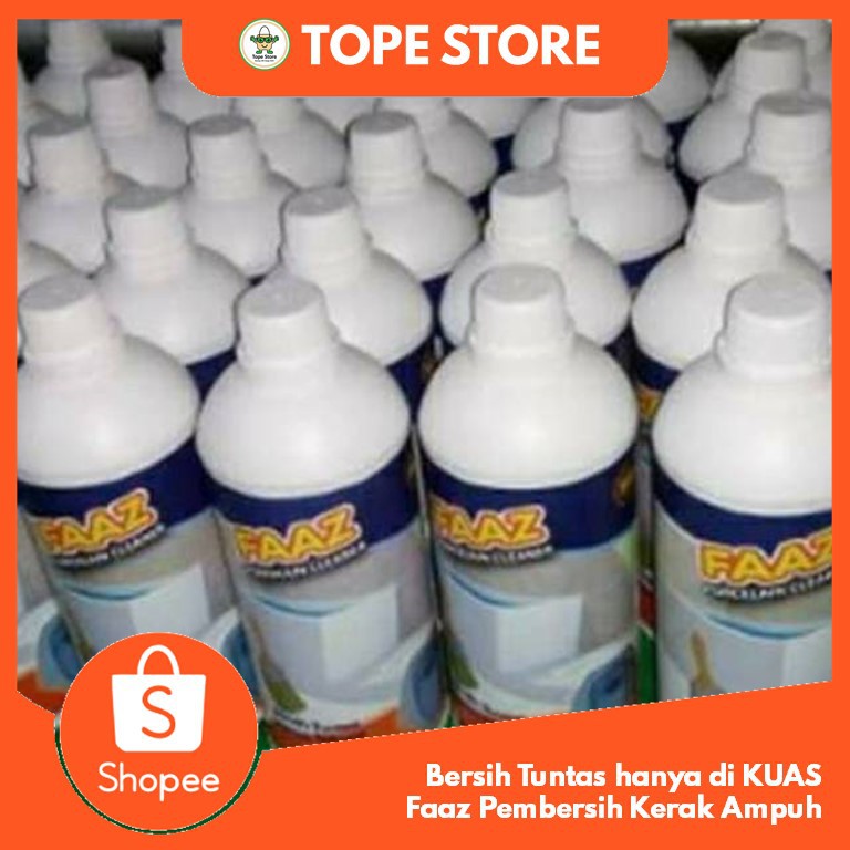 Faaz Porcelain CleanerBisa COD Barang ready stock siap kirimAdalah cairan Pembersih Kloset Terbaik yang sangat kuat yang terbuat dari berbagai bahan-bahan aktif berstandar internasional dan terbukti sangat ampuh untuk membersihkan kerak maupun noda yang telah menempel pada keramik dan porselen dengan sangat mudah dan sangat cepat.Kelebihan Faaz Porcelain Cleaner Pembersih Kerak Kamar Mandi Paling Ampuh :- Tidak mengandung HCl- Tidak merusak keramik dan nat (sambungan keramik)- Tidak merusak warna porselen/keramik- Bisa digunakan untuk keramik putih, berwarna maupun bertexture- Tidak perlu disikat, hanya perlu dikuas- Tidak perlu menunggu (tuang, langsung dikuas)- Lebih efektif dan efisien. Sangat menghemat tenaga dan waktu anda- Dapat digunakan untuk semua jenis & warna keramik- Cocok untuk porselen, keramik, stainless & plastikBerikut ini adalah petunjuk penggunaan produk FAAZ Pembersih Porselen dan juga keramik, antara lain :- Dapat digunakan pada semua jenis keramik dan juga semua warna keramik- Sangat cocok untuk objek – objek benda seperti porselen, keramik, stainless dan juga plastik.- Produk ini tidak cocok digunakan dan diaplikasikan pada granit, ubin, marmer, dan juga teraso- Menggunakan takaran sesuai dengan syarat dan ketentuan yang berlaku. Berikut ini adalah takaran yang dianjurkan dalam penggunaan produk ini :- Untuk kerak yang ringan perbandingan produk pembersih dengan air adalah 1 : 3- Untuk kerak – kerak yang sedang, perbandingan produk pembersih dengan air adalah sekitar 1 : 2- Untuk kerak – kerak yang termasuk kategori berat dapat menggunakan takaran produk pembersih : air sekitar 1 : 1.- Jika kerak sangat berat, maka Anda dianjurkan tanpa menggunakan campuran air sedikitpun.Faaz Porcelain Cleaner Adalah cairan Pembersih Kloset Terbaik yang sangat kuat yang terbuat dari berbagai bahan-bahan aktif berstandar internasional dan terbukti sangat ampuh untuk membersihkan kerak maupun noda yang telah menempel pada keramik dan porselen dengan sangat mudah dan sangat c
