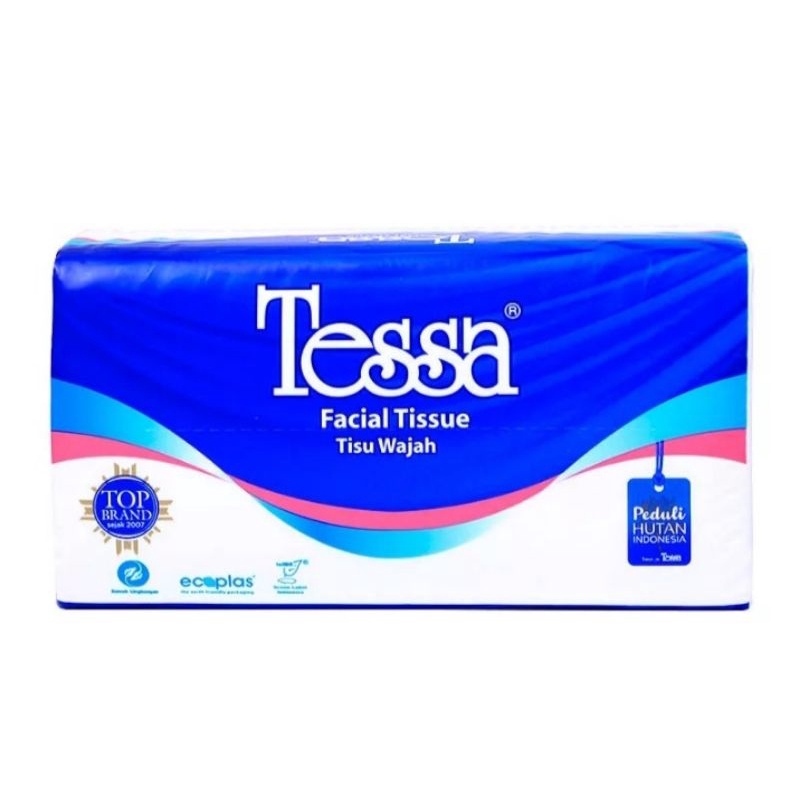 TESSA Facial Tissu 250sTESSA Facial Teissu merupakan produk tisu wajah yang terjaga kebersihannya untuk keperluan sehari-hari Anda. Tisu ini terbuat dari bahan 100% serat alami yang diproses secara higienis, sehingga menghasilkan lapisan tisu yang lembut dan memiliki daya serap tinggi. Produk tisu ini juga aman untuk digunakan dan tidak menyebabkan iritasi pada wajah. Tisu ini dilengkapi dengan kemasan ekonomis yang praktis untuk disimpan ataupun dibawa bepergian.Detail- Jenis produk: Tisu- Kapasitas: 250 lembar- Bahan: 100% serat alami- Tidak mudah robek- Daya serap tinggi- Tidak menyebabkan iritas