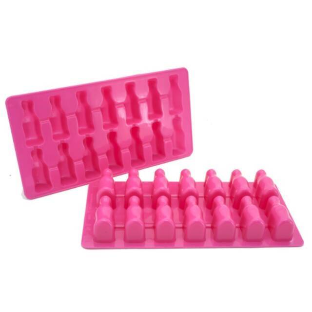 Dapat digunakan untuk mencetak es batu, jelly, coklat dan sari buah.Cetakan berbentuk botol. Material Plastikharga termasuk 1 pcs cetakan dengan 14 lubang cetakan.Uk. 24.3 x 12.5 x 3 cmTersedia dalam 3 warna pilihan:- Pink- Orange- Hi