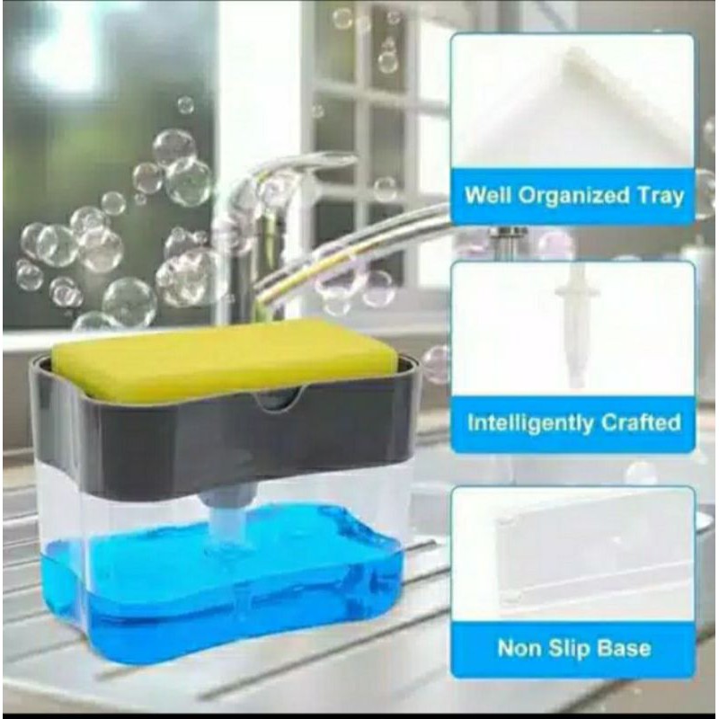 Tempat sabuan cicipiring kekinian praktis .hemat tempatDesain inovatif, kualitas tinggi, tahan lama ! Tidak seperti dispenser tradisional lainnya, Dispenser Sabun ini dirancang untuk menjadi lebih unggul, terbuat dari plastik ABS yang tidak mudah pecah sehingga tahan lama.instan 2-IN1 dispenser sabun cuci + CADDY, 1 pengendalian tangan, organisasi kompak: Sink DISPENSER dengan caddy terpasang memegang spons, scrubber, kain, sabut gosok di satu tempat yang nyaman sambil menjaga air dari counter dapur. Tidak ada tumpahan berantakan, menetes atau tertinggal.Pengeluaran yang tepat, mudah & kapasitas besar: mengeluarkan sabun sejumlah yang sempurna ke spons, sangat mudah digunakan. Wadah ini memiliki kapasitas 13 ons sehingga Anda tidak perlu sering mengisinya. Bekerja dengan semua jenis sabun cair.Menghemat uang, ruang dan waktu! Dispenser pencuci piring ini benar-benar akan mengubah kehidupan dapur Anda, dirancang untuk mencuci piring lebih cepat, operasi instan akan menghemat waktu Anda dan 1 pengendalian tangan akan menjaga tingkat energi Anda selalu tinggi. Ide hadiah Great untuk teman Anda atau keluarga.isi kemasan1x Dispenser Sabun1 x S