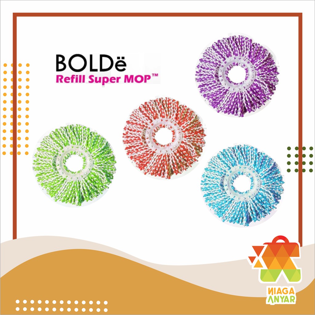 PERHATIAN!!1. Silahkan beli tambahan bubble untuk pengiriman yang lebih aman (baca juga ketentuan di page bubble wrap) https://shopee.co.id/product/3188474/377405693/2. Silahkan baca dahulu jadwal dan ketentuan pengiriman yang ada di profile page kami dengan cara klik "kunjungi toko"3. Tidak dapat memilih VARIASI, VARIASI dikirimkan secara ACAK / RANDOM sesuai STOCK YANG TERSEDIA (tidak selalu berbeda)4. Ketidaktahuan akibat tidak membaca informasi tersebut bukan tanggung jawab kamiBolde Kain Refill Super Mop :-. Bahan : Microfiber-. Refill Semua Super Mop BOLDE-. Warna tidak bisa memilih dikirimkan secara Acak sesuai dengan