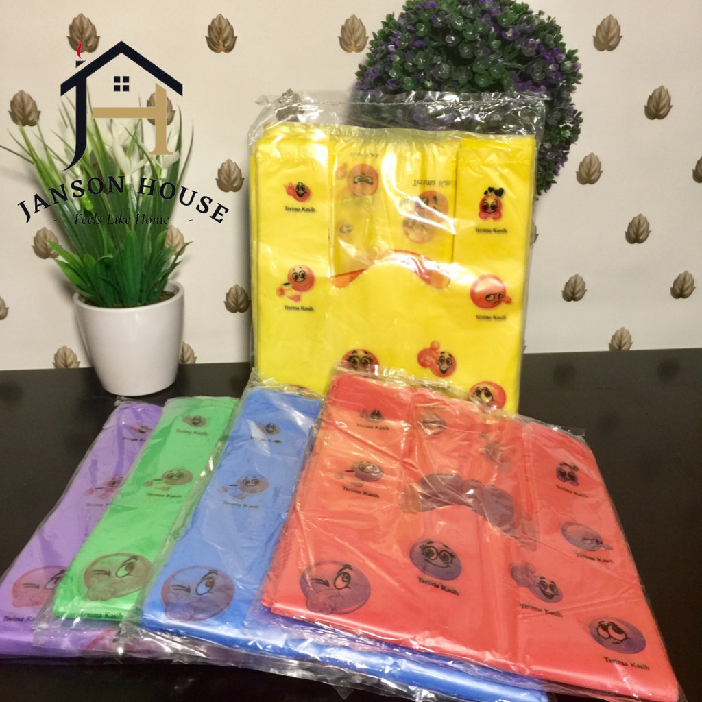 Produsen Perlengkapan di Kabupaten Karanganyar Kantong Plastik Kresek Smiley / Emoji / Emoticon Multicolor Tebal Ukuran 15 X 33 Cm Isi 50 Lembar dari Ozo Kota Jakarta Barat
