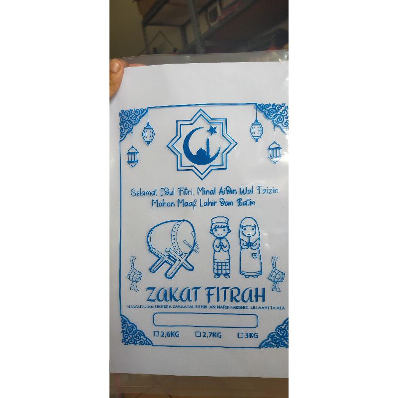 Raedy stok plastik untuk beras zakat dengan berat maksimal 3kg.Plastik tebal 0,8 micron.Ukuran plastik 23x35.Ready warna merah, hijau, dan biru.Desain dan warna yang ready sesuai gambar, tdk bisa req