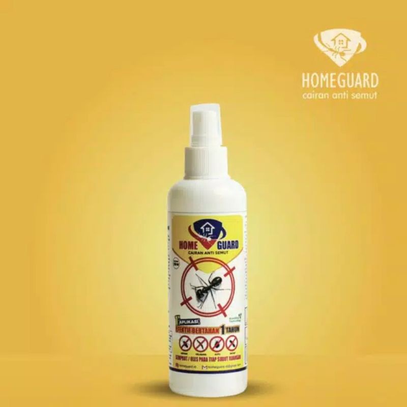 1x semprot, semut kecoa rayap hilang 1 tahun!Home Guard adalah cairan anti semut semprot terobosan terbaru yang sangat efektif untuk mencegah masuknya semut atau serangga lainnya seperti kecoa, kutu, rayap, dll kedalam rumah. Bahan aktif dari Home Guard ini melekat pada area yang disemprot dan bertahan hingga 1 tahun, jadi penggunaannya cukup semprot sekali efektif hingga 1 tahun.Kelebihan Home Guard adalah sbb:+ Mudah sekali di applikasikan.+ Sekali applikasi efektif hingga 1 tahun.+ Tidak meninggalkan noda apapun, baik pada furniture maupun keramik, marmer, granit dll.+ Aman bagi hewan peliharaan.+ Tidak berbau.+ Ramah lingkungan.+ Harga yang sangat ekonomis.+ Dikemas dalam botol spray sehingga praktis dalam penggunaan.Cara pemakaian:1. Bersihkan ruangan yang hendak disemprot dengan Home Guard2. Semprot Home Guard di sudut pertemuan dinding dan lantai sekeliling ruangan, juga di keliling kusen pintu dan jendela. Menutup semua jalur lewat serangga merayap ke dalam ruangan3. Diamkan selama 4 jam agar Home Guard bekerja dengan maksimal. Setelah 4 jam boleh dibersihkan4. Untuk area yang sudah ada banyak rayap / semut / serangga lainnya, penyemprotan harus merata di area tersebut5. Untuk meja, cukup semprotkan di kaki-kaki mejanya saja6. Untuk area basah seperti kamar mandi, pada saat penyemprotan harus dalam keadaan kering dan didiamkan selama 4 jam7. 1x aplikasi bertahan hingga 1 tahunApabila cara pemakaian sesuai, kami JAMIN semut, rayap, kecoa, dan serangga merayap lainnya tidak akan datang sampai 1 t