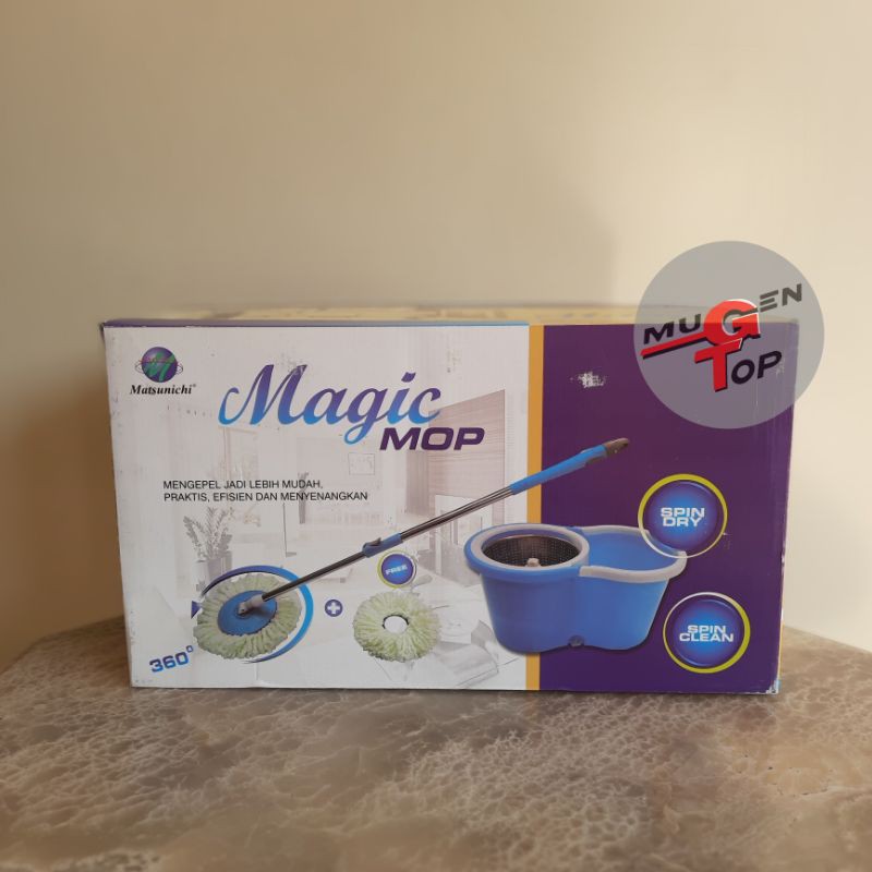 KINI HADIR New Geenerasi Mop didesain lebih sempurna.Matsunichi Magic MOP alat pel lantai yang dapat berputar 360⁰. Anda tidak perlu memeras air pel dengan tangan, cukup menekan tongkat pel pd tempatnya maka kain pel lantai akan terperas dengan sendirinya. Sangat Praktis digunakan.Spesifikasi Produk:- Name Brand : Matsunichi- Gagang Stainless Bisa dilepas- 2 kain pelSangat ideal untuk membersihkan lantai keramik ataupun marmer.Mikro unik-serat kain pel menyerap kotoran, noda,